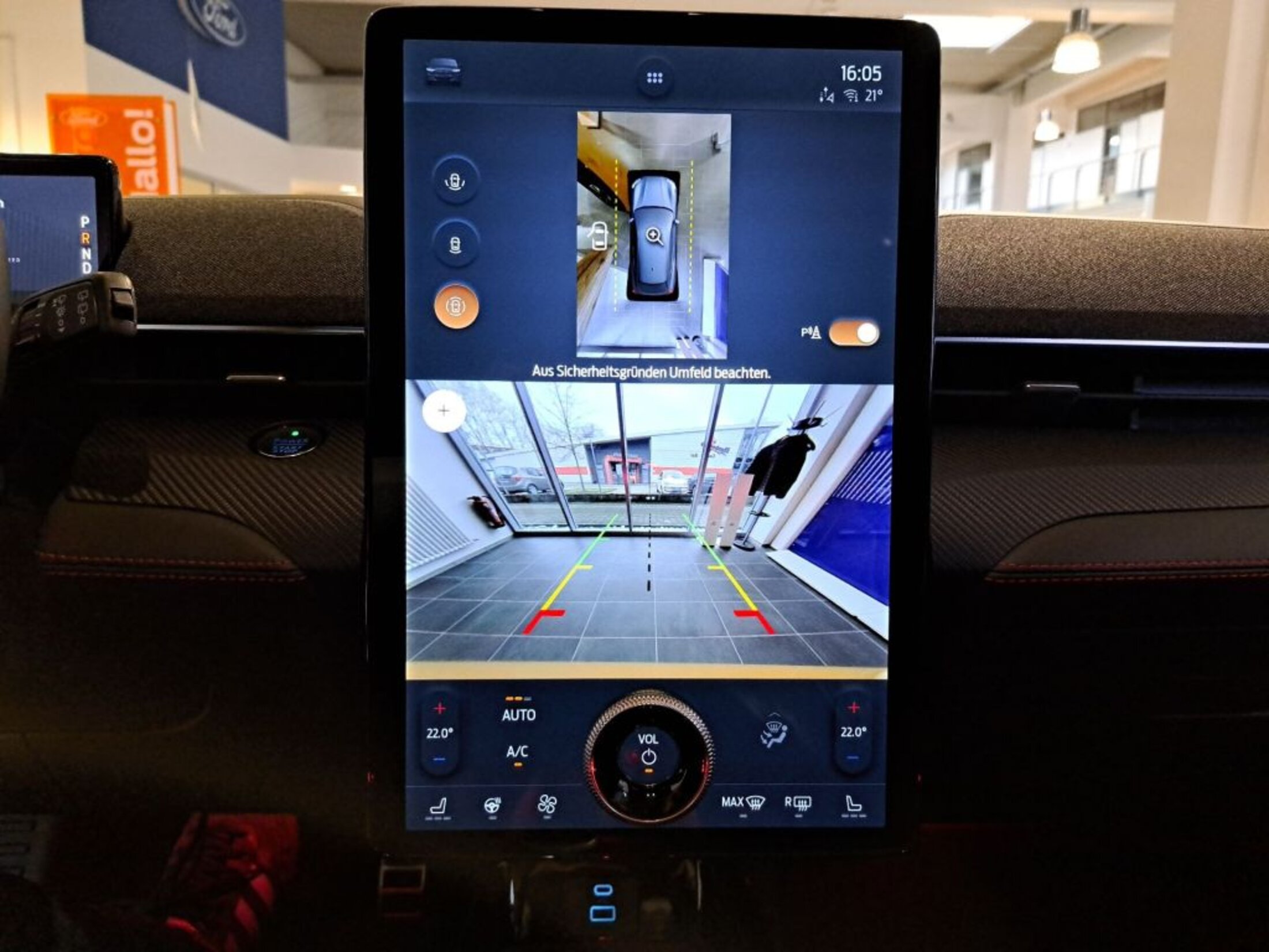- Außenspiegel elektrisch einstellbar und beheizbar mit integrierten Blinkleuchten, mit Umfeldbeleuchtung und mit Toter-Winkel-Assistent (Blind Spot Information System inkl. Cross Traffic Alert) mit Notbremsfunktion beim Rückwärtsausparken
